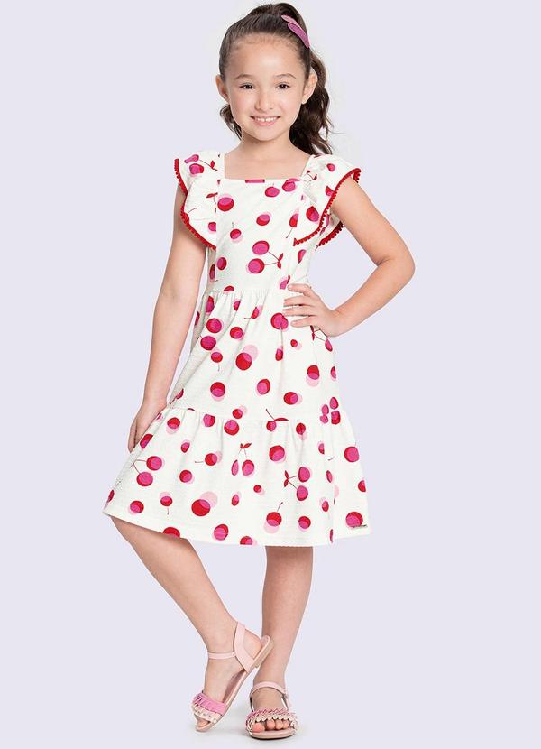 Alakazoo - Vestido Midi Menina com Estampa Cereja Bege