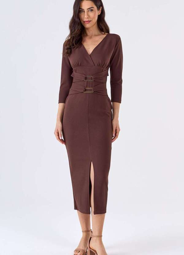 Pks - Vestido Midi Pks com Argolas Marrom