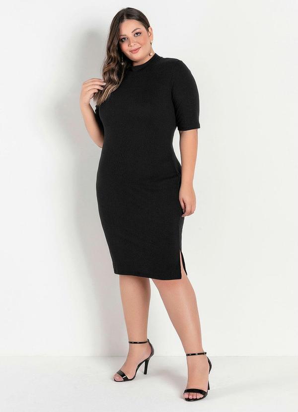 Marguerite - Vestido Midi Preto Tubinho com Gola Plus Size