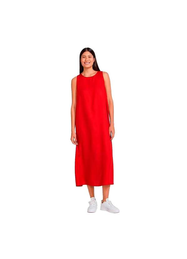 Hering - Vestido Midi sem Manga Evasê em Tecido Vermelho