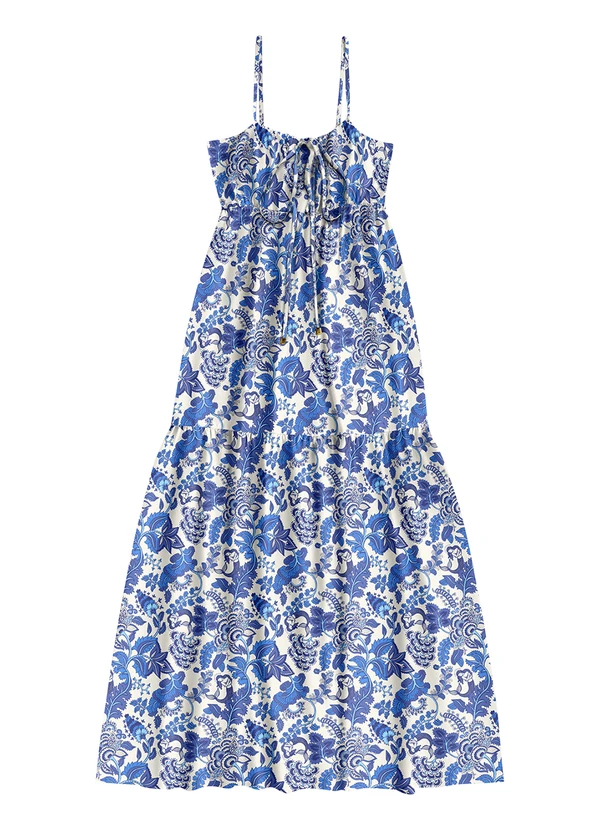 Angel - Vestido Midi Viscose Estampada Azul