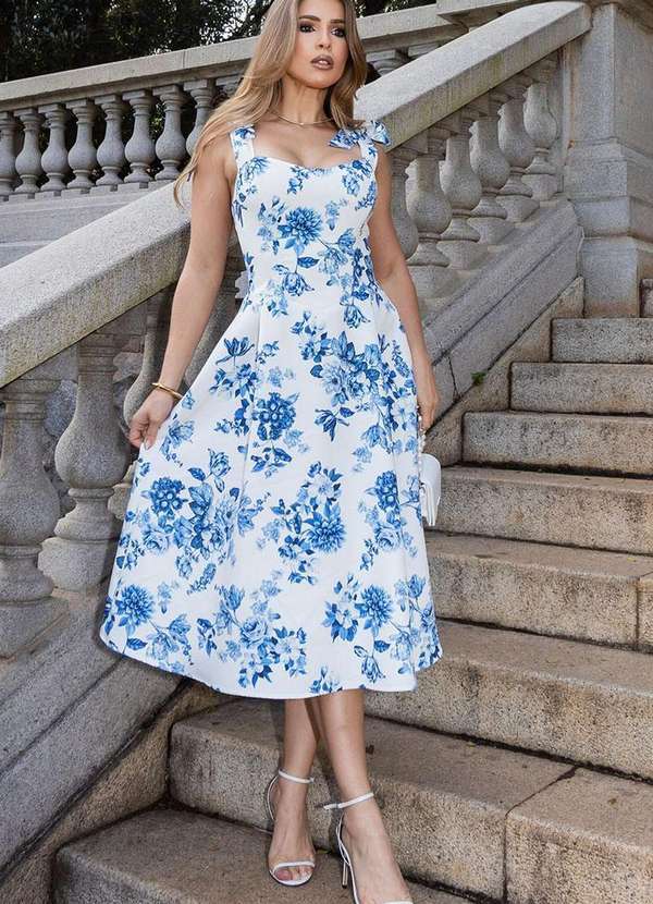 Miss Misses - Vestido Miss Misses Joyce Midi Estampado Azul