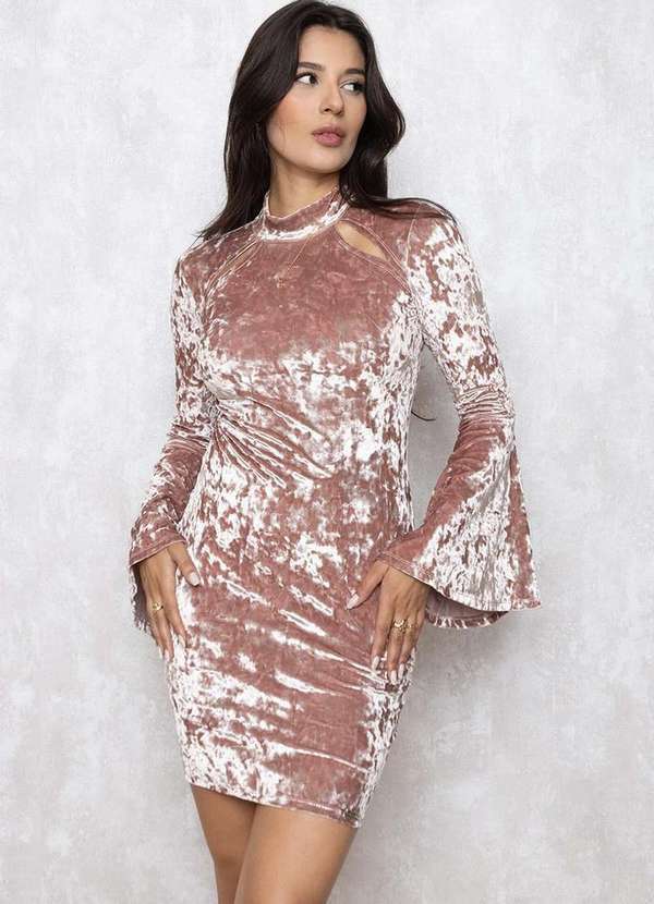 Vestido Miss Misses tubinho curto, gola alta, com , vazado ombro, manga sino. Tecido:veludo. Frente: gola alta, vazado ombro. sem bojo. Costas: decote gota, com botão gola. Fornecedor: Miss Misses Ref:12035 Tamanho P veste 36/38 Comprimento (85cm) Tamanho M veste 38/40 Comprimento (87cm) Tamanho G veste 40 Comprimento (89cm) Composição:90%Poliester 10%Elastano Pode ser usado em festas, aniversários, em diversos eventos casuais