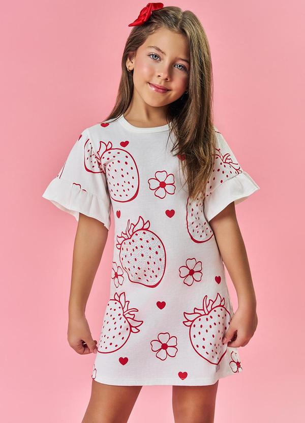 Cinti - Vestido Morangos com Cheirinho de Morango Bege
