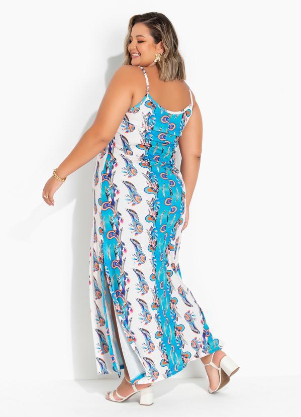 Marguerite - Vestido Paisley Azul com Fendas Plus Size