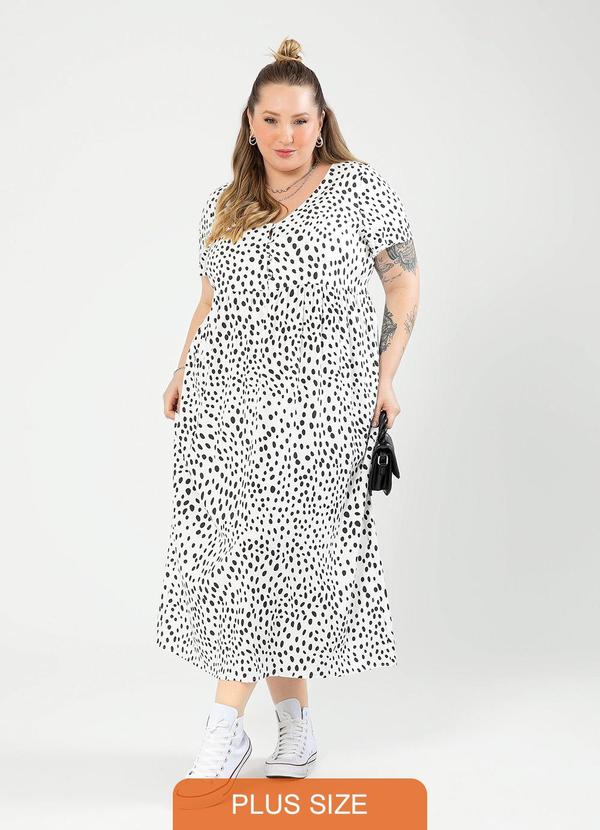 Cativa - Vestido Plus Size Midi em Viscose Branco