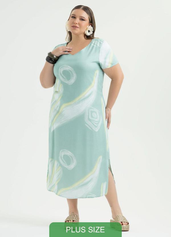 Cativa - Vestido Plus Size Midi em Viscose Verde Claro
