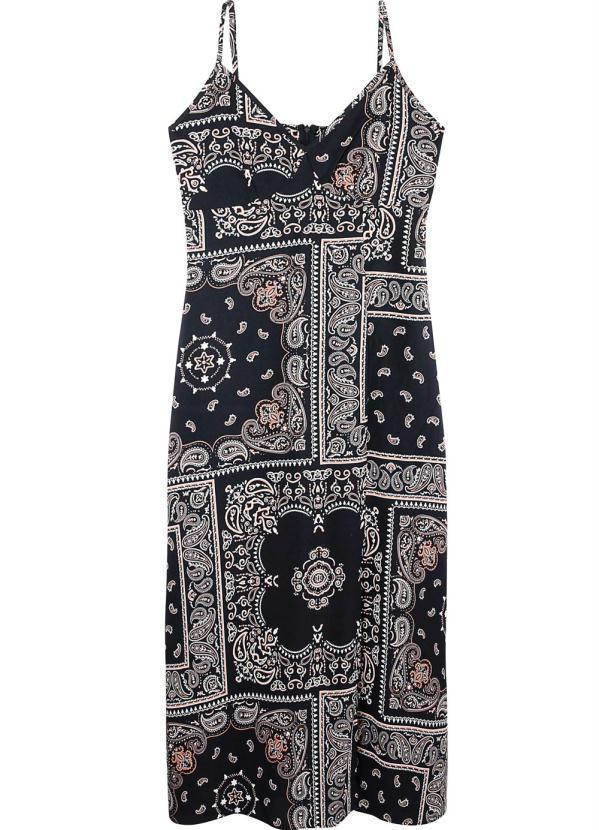 Enfim - Vestido Preto Midi Bandana com Fenda