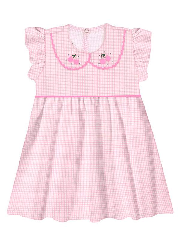 Alakazoo - Vestido Quadriculado Gola Dupla BordadosRosa