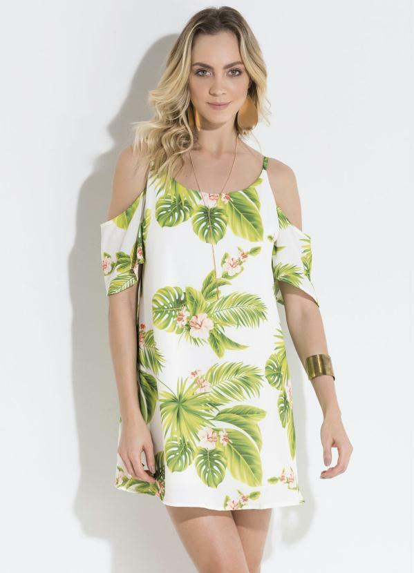 Quintess - Vestido Quintess Curto Ciganinha Folhagem Verde