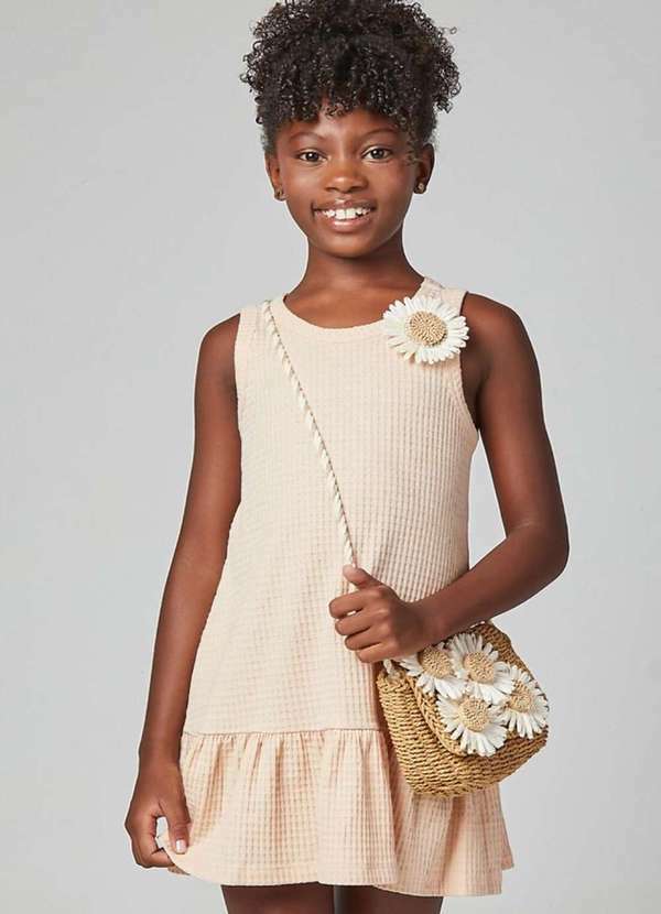 Luluzinha - Vestido Regata com Barrado em Malha Waffle Bege Luluzinha Bege