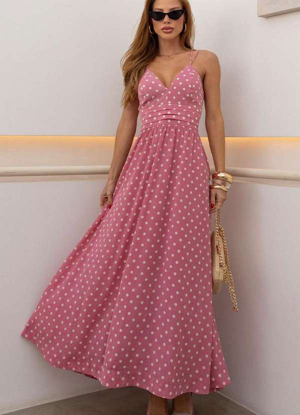 Miss Misses - Vestido Salete Midi Poa C/Ziper Costa Rosa