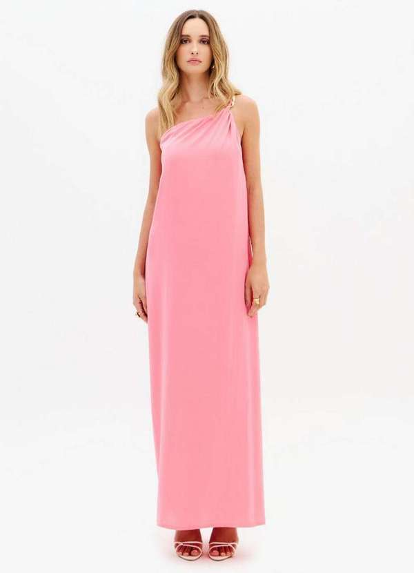 Com tecido leve e toque suave, o vestido super midi traz modelagem ombro único e alça delicada com aviamento metálico. O caimento fluido acompanha os movimentos com naturalidade. Perfeito para produções elegantes e descomplicadas!