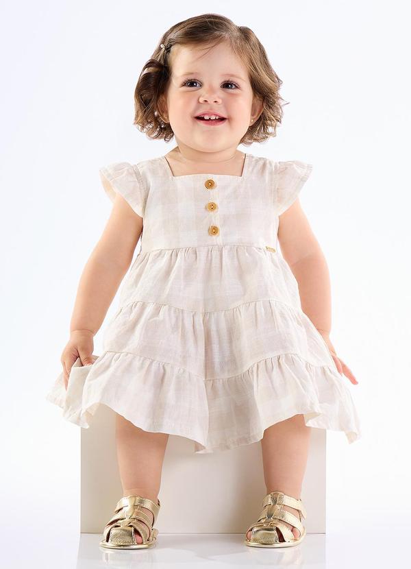 Pulla Bulla - Vestido Tecido Xadrez Fio Tinto Bege