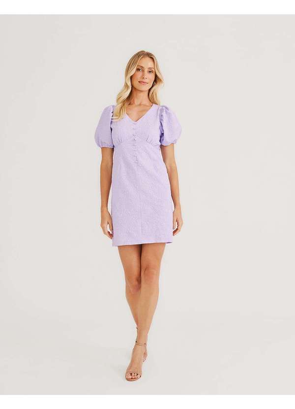 Zinzane - Vestido Texturas Manga Bufante - Lilas Roxo
