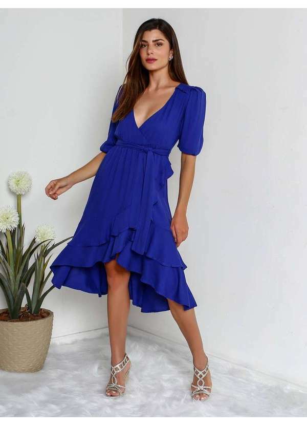 Susie Modas - Vestido Transpassado Babados Feminino Azul