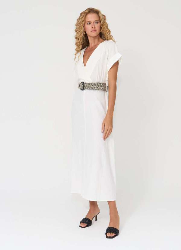 Ritmi Studio - Vestido Transpassado com Cinto de Palha Branco