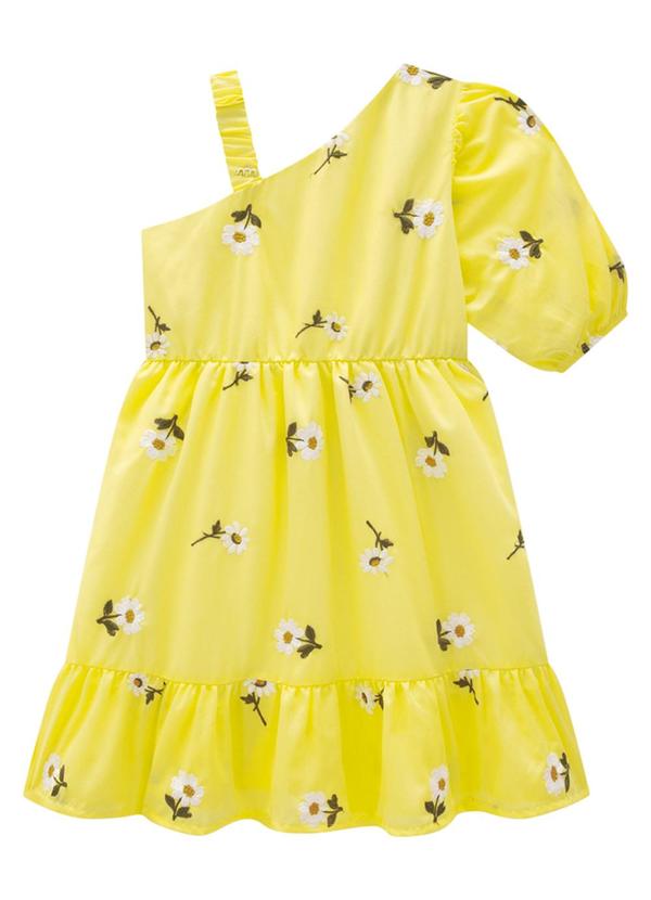 Milli e Nina - Vestido Tricoline Bordado Margaridas Amarelo