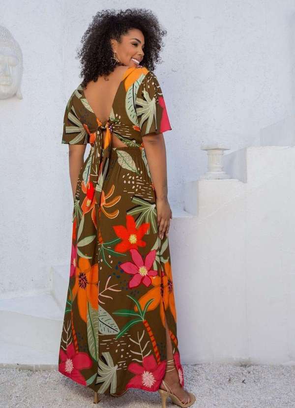 Mais na Moda Plus - Vestido Verde Florido Plus Size Chic Aberto Patricia - Verde Florido