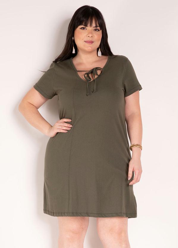 Marguerite - Vestido Verde Militar com Faixa Grátis Plus Size