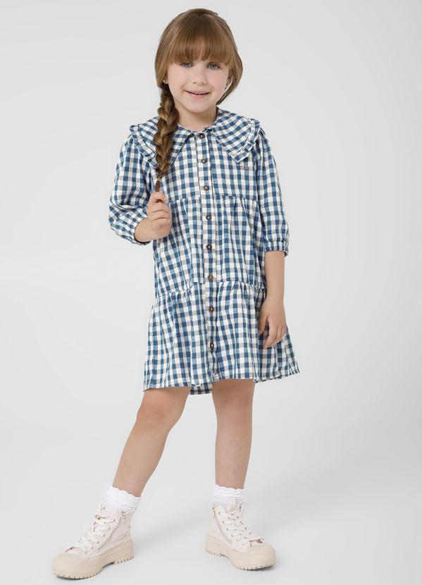 Carinhoso - Vestido Xadrez Menina Jeans Azul