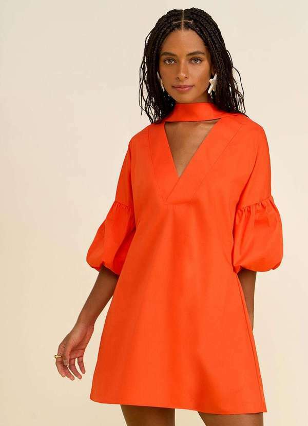 Zinco - Vestido Zinco Solto Decote V Manga Curta Curto Laranja Laranja
